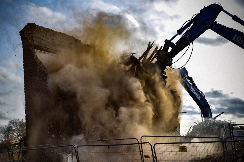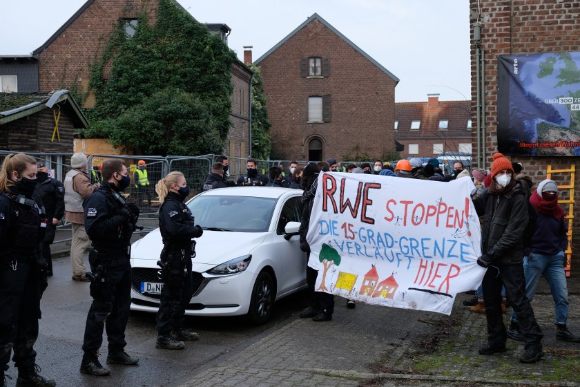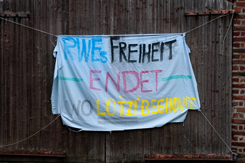 Ende Januar passiert dann, worauf alle gewartet haben: RWE schreitet zur Tat. Ein Großaufgebot von Polizist_innen begleitet die Abbruchfahrzeuge. Aktivist_innen, die vorsichtshalber die Straße bewacht haben, versperren mit einer Blockade den Weg ins Dorf. Auch als die Abrissarbeiten begonnen haben, können die Sicherheitskräfte nicht verhindern, dass Maschinen immer wieder durch Aktivistis besetzt werden. Am vierten Tag wird das letzte Haus dem Erdboden gleichgemacht.